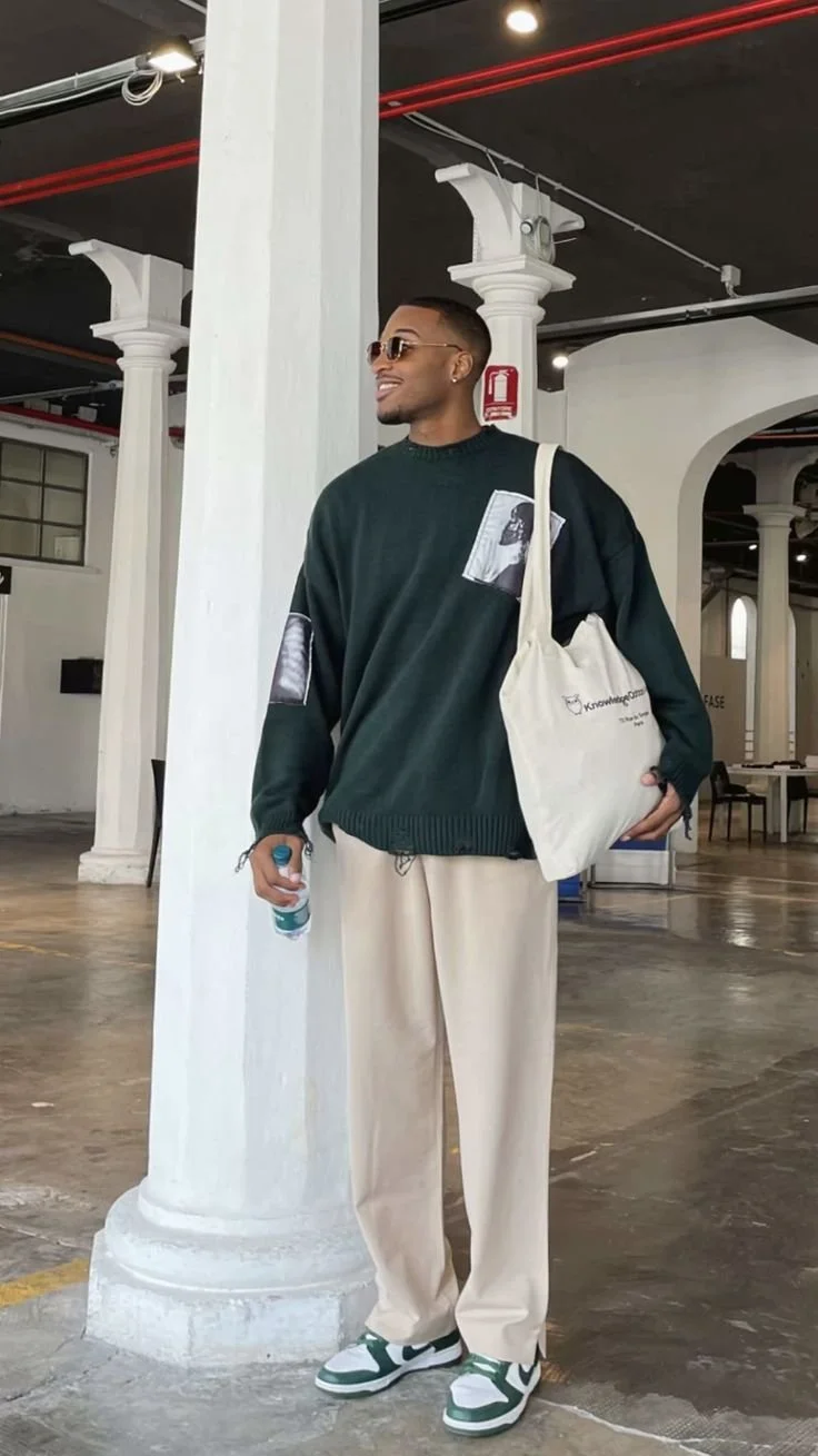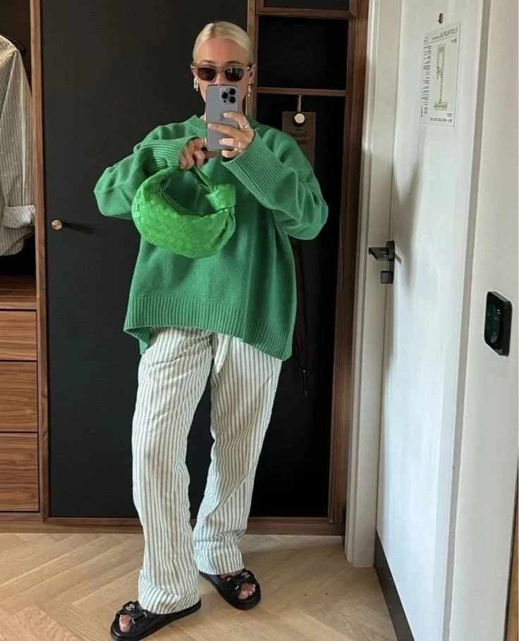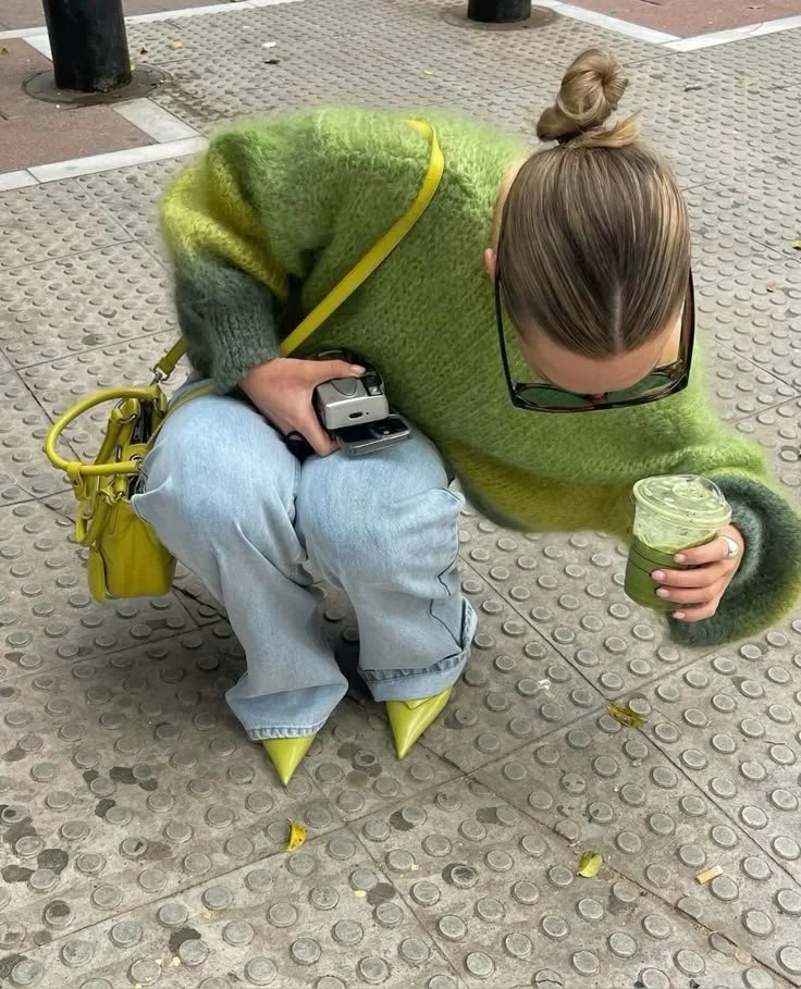 City style with pops of green or green accessories.